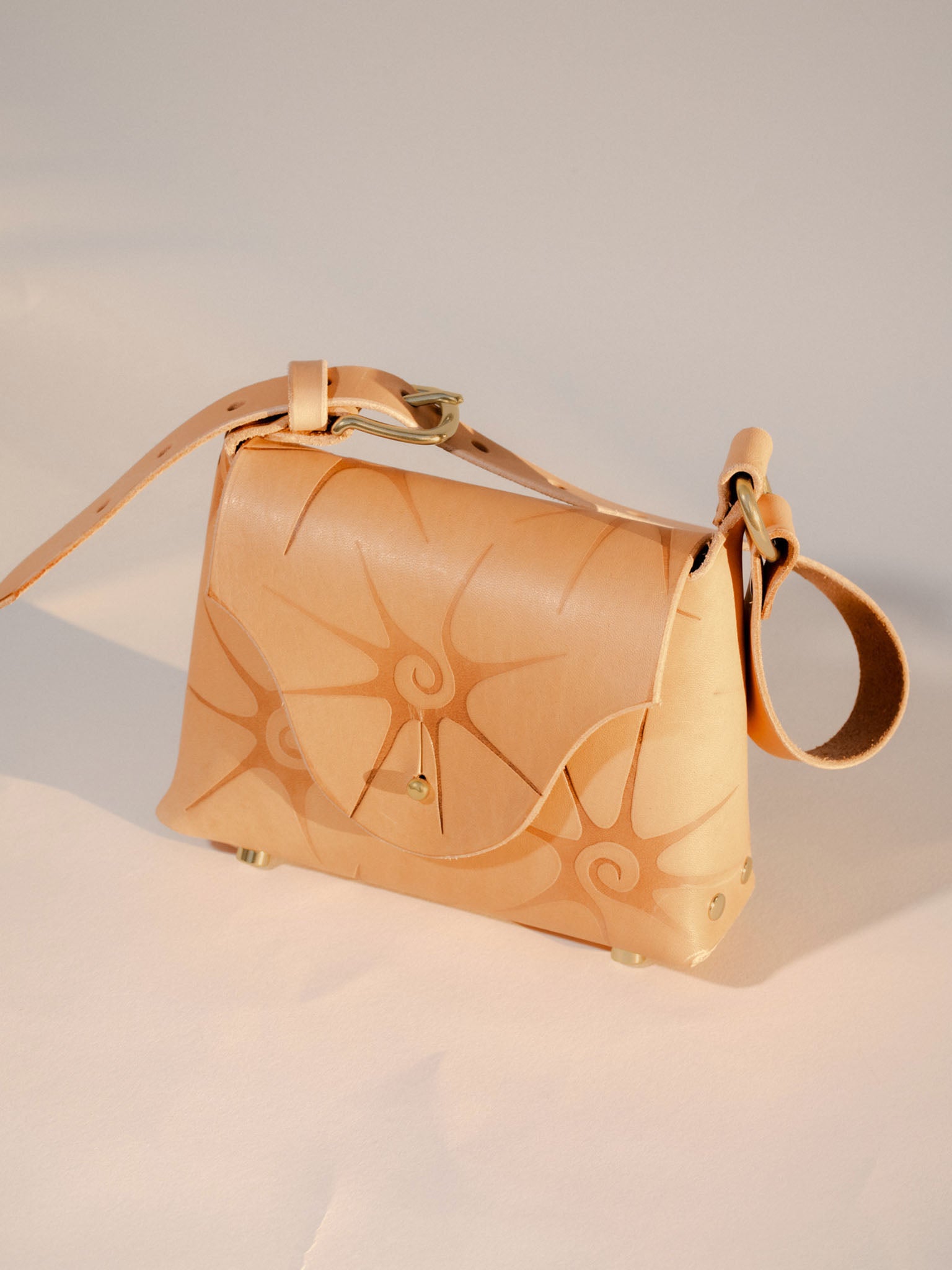 The Hunter Bag featuring Hand Embossed Spiral Motif, set over entire bag